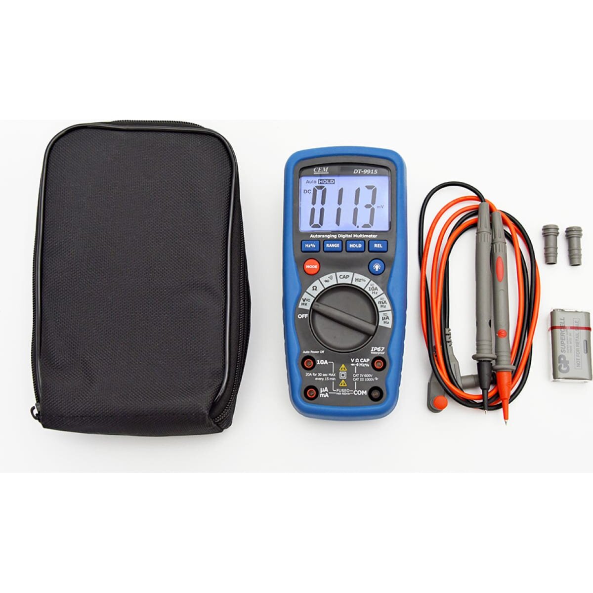Мультиметр СЕМ DT-9915 482018 поставляется со всем необходимым для проверки правильной работы электроцепи. Контрастный ЖК-дисплей с 4000 отсчетов обеспечивает комфортное считывание показаний. Максимальное значение напряжения составляет 1000 В. Полярность подключения элементов цепи определяется в автоматическом режиме.