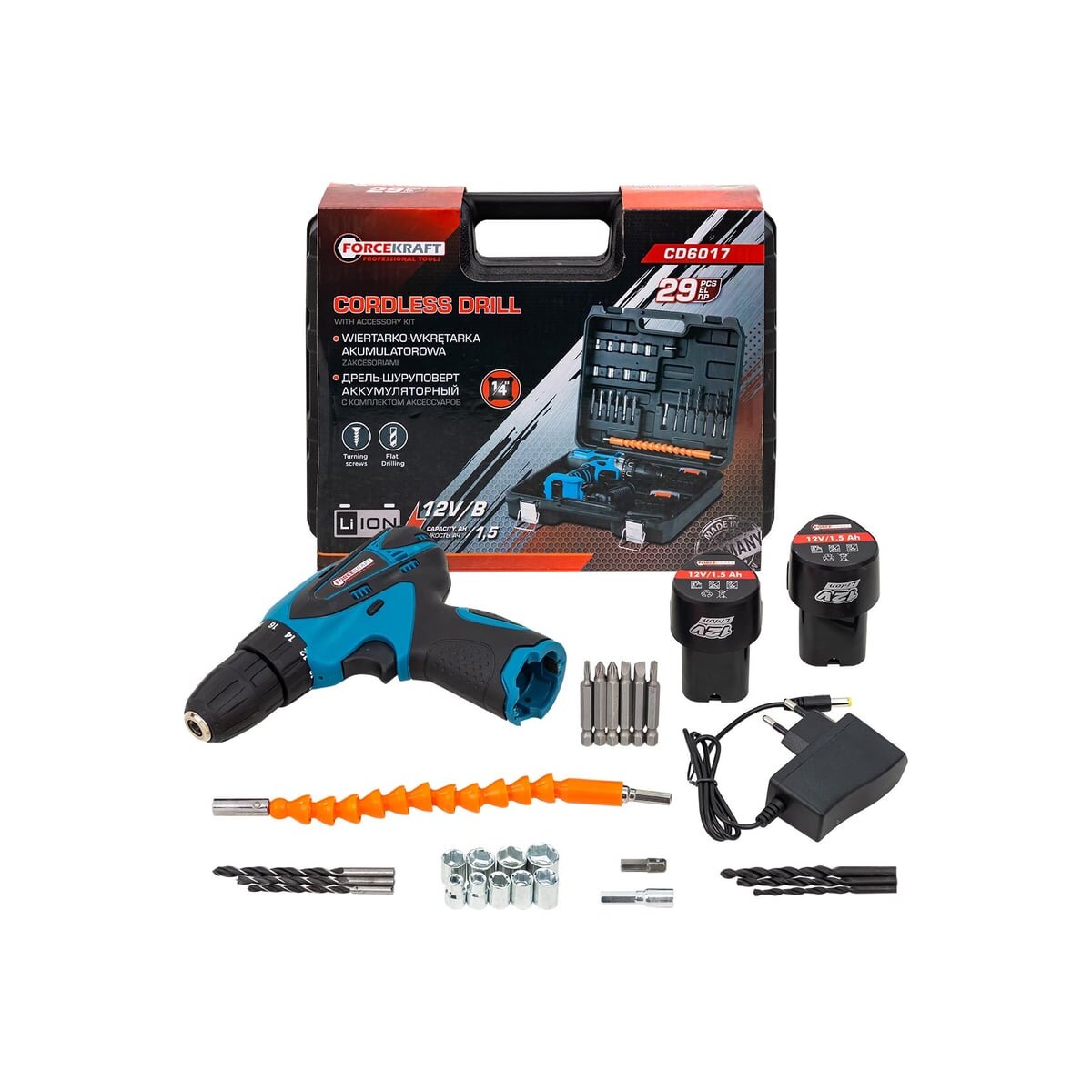 Аккумуляторный шуруповерт Forcekraft 12 V — это компактный и удобный инструмент, который станет незаменимым помощником в домашнем ремонте и строительстве. Он позволяет быстро высверливать отверстия нужного диаметра как в деревянных, так и в металлических поверхностях, а также эффективно вкручивать и извлекать крепеж.