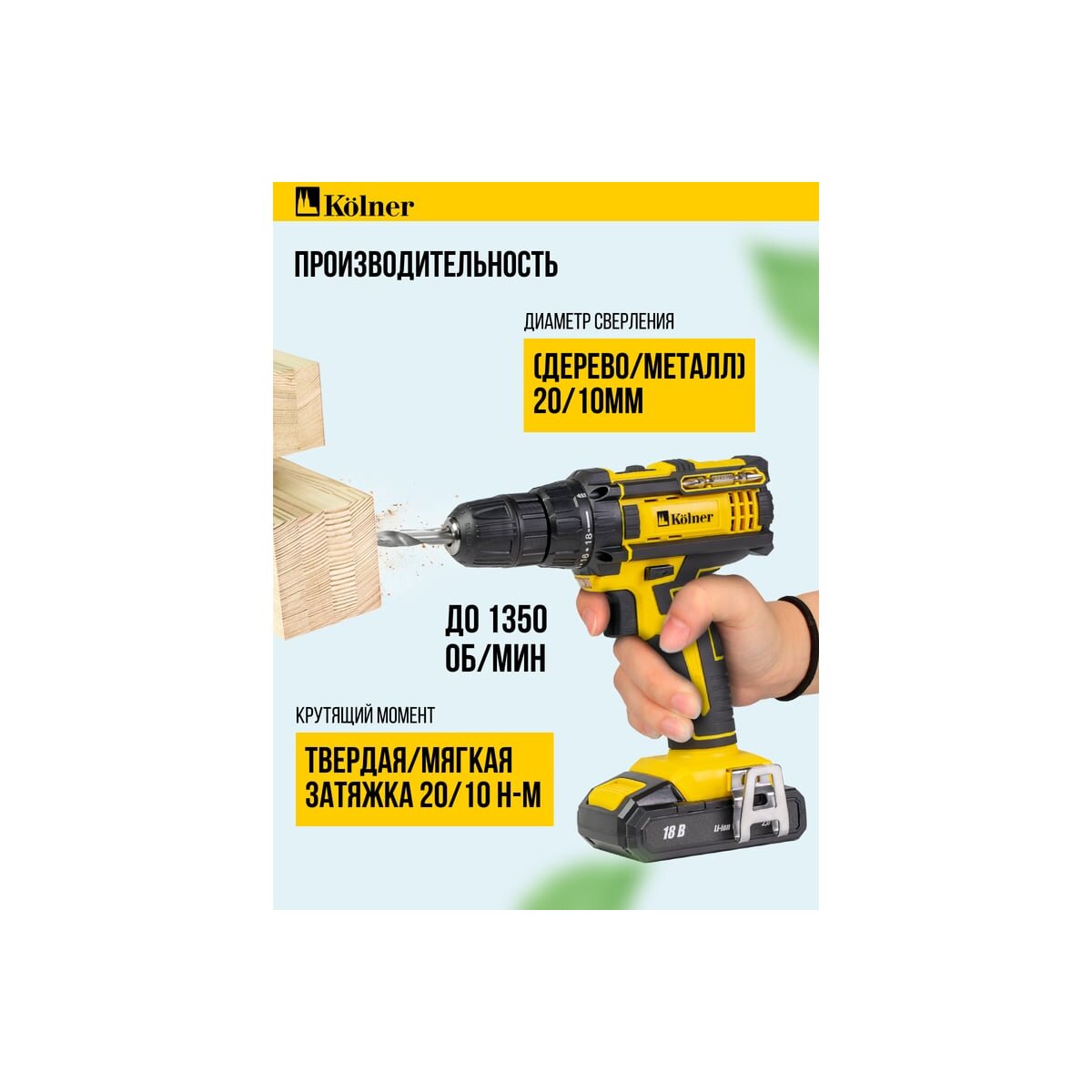 Дрель-шуруповёрт Kolner KDD 18BL — ваш надежный помощник в любых ремонтных и строительных задачах, обеспечивающий мощность и удобство в каждом движении.