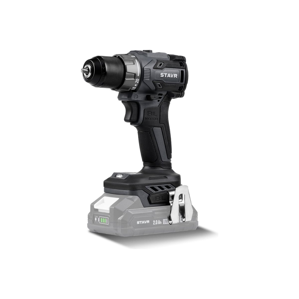 Дрель-шуруповёрт аккумуляторная бесщёточная, 18V UNI-M, Stavr SDD 18BL — это мощный и надёжный инструмент, который предназначен для выполнения широкого спектра задач по монтажу и демонтажу, а также для закручивания и откручивания шурупов и винтов.