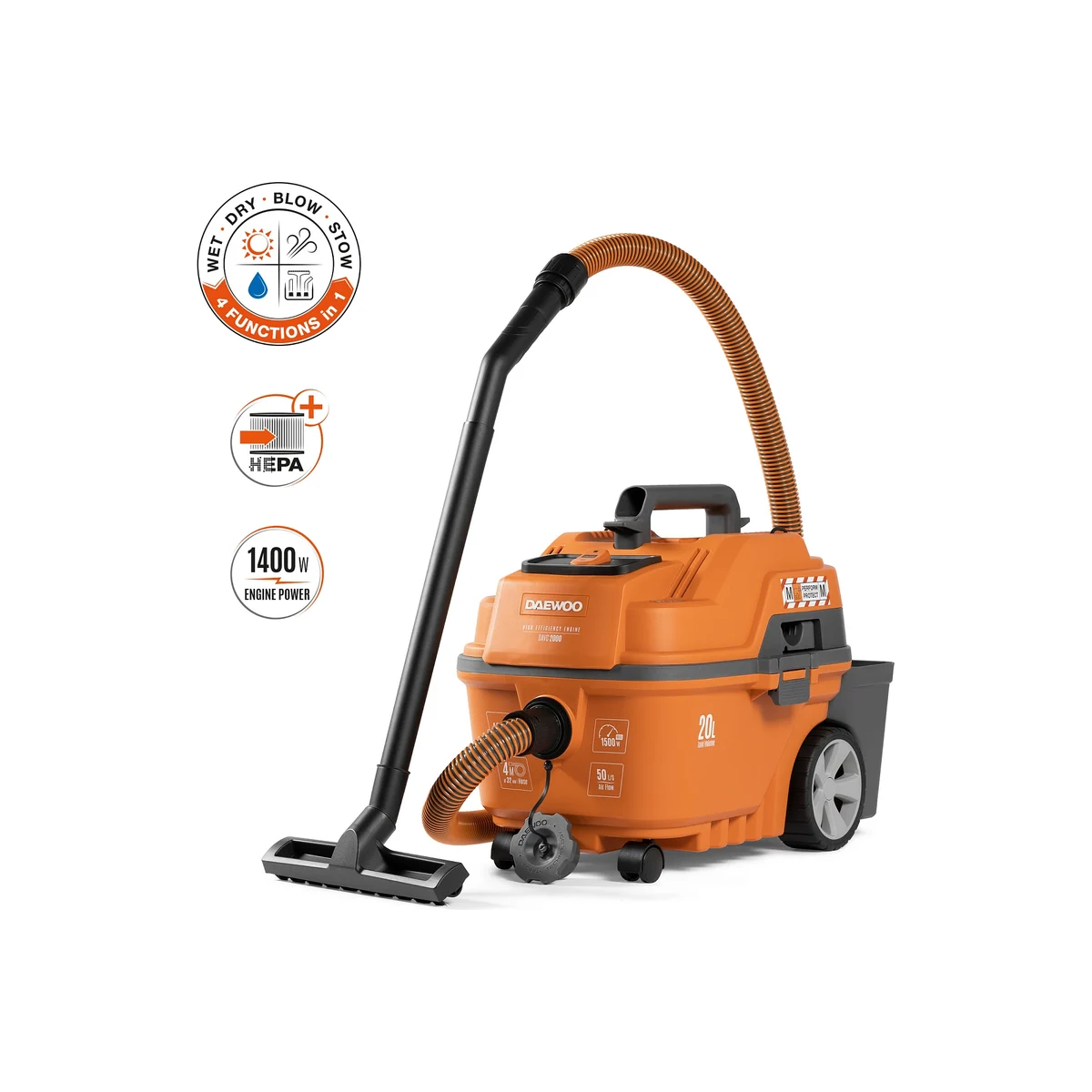 Технические характеристикиТип пылесосастроительныйТипсухая уборка + влажная уборкаТип питаниясетьМодель пылесосаDAVC 2000Тип пылесборникамешок/контейнерВертикальныйнетМощность1500 ВтОбъем бака20 лРазрежение250 мбарРозетка для электроинструментанетПневморозетканетМощность встроенной розеткинет розетки кВтТип аккумуляторанетКоличество аккумуляторов в комплектенетСистема очистки фильтраручнаяВозможность сбора жидкостиестьВозможность работы без мешкаестьВозможность влажной уборкиестьМоющийнетРанцевыйнетВес нетто4.5 кгГабариты без упаковки565х375х425 ммНапряжение220-240 ВДлина всасывающего шланга4 мДлина кабеля5 мРегулировка мощностинетИндикация заполнениянетФункция выдуваниядаАвтоматическое сматывание кабелянет