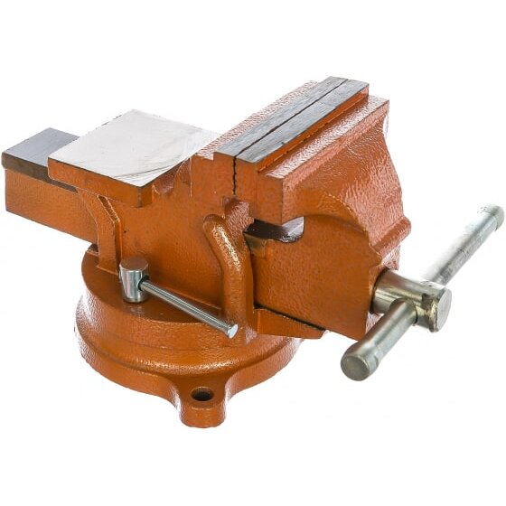 Слесарные поворотные тиски с наковальней и губками шириной 100 мм — инструмент для захвата деталей размером до 75 мм.