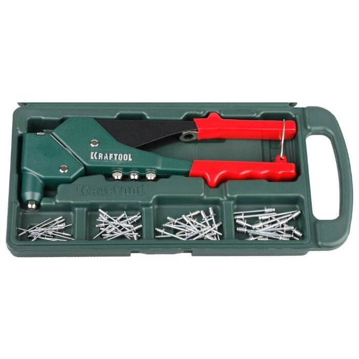 в комплекте заклепки алюминиевые 2.4 мм - 15 шт., заклепки алюминиевые 3.2 мм - 15 шт., заклепки алюминиевые 4.0 мм - 15 шт., заклепки алюминиевые 4.8 мм - 15 шт.