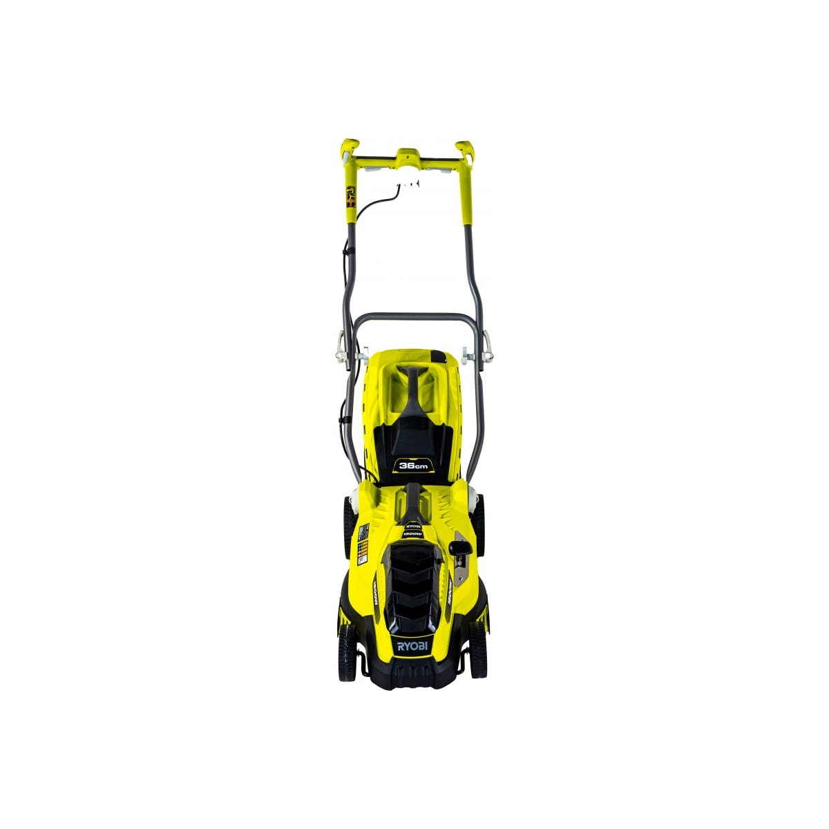 Травосборник объемом 45 литров, обеспечивает продолжительную работу газонокосилки Ryobi RLM15E36H 5133002345, так как он не нуждается в частом очищении.