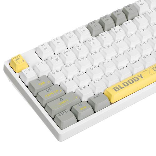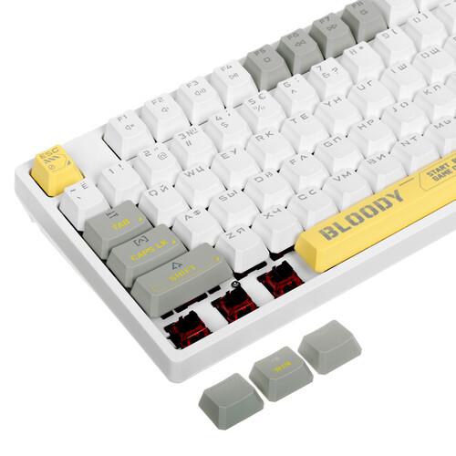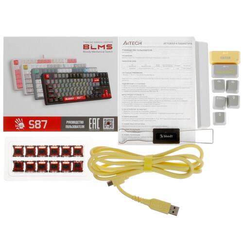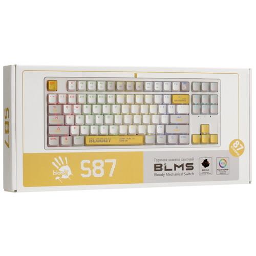 Клавиатура проводная A4Tech Bloody S87 Energy оборудована линейными переключателями Bloody BLMS Red Plus. Пользователям обеспечено плавное и мягкое нажатие, а также уменьшение нагрузки на область пальцев. Клавиша Bloody key служит для управления интегрированной подсветкой. Во встроенной памяти объемом 4 МБ можно хранить макросы.