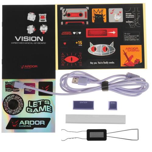 Игровая клавиатура проводная ARDOR GAMING Vision механического типа оснащена RGB подсветкой. Модель оснащена линейными переключателями ARDOR GAMING Red с длиной пути 4 мм. Интерфейс подключения клавиатуры – USB Type-A. Система Hot Swap используется для быстрой замены переключателей.