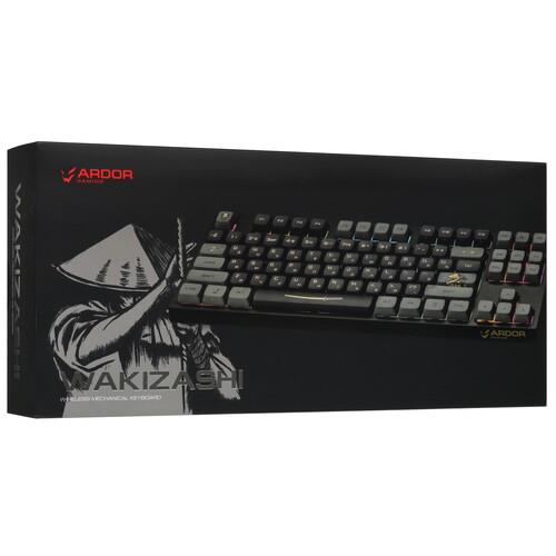 Клавиатура ARDOR GAMING Wakizashi [AG-ZD-87GT-XDA-HS-B] оформлена в самурайской тематике и отличается компактными размерами. Модель оснащена 87 клавишами с механическими переключателями Gateron Mint. Они отличаются укороченным ходом 2 мм и смазанными стабилизаторами, благодаря чему обеспечивается легкое нажатие и плавное срабатывание. Функции клавиш можно программировать. Система HotSwap позволяет менять переключатели.