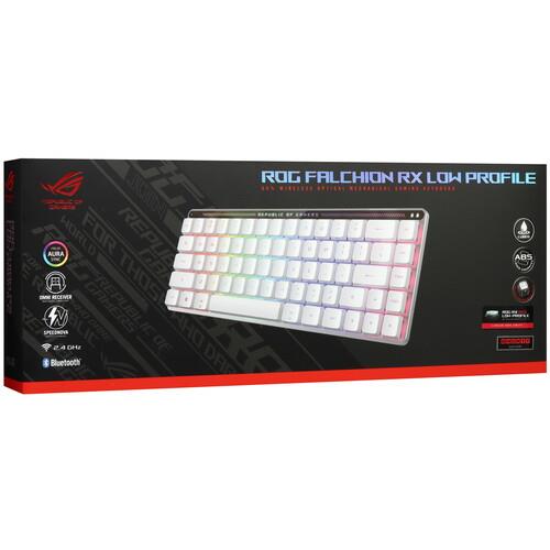Клавиатура ASUS ROG Falchion RX LP может работать как проводная, с помощью подсоединенного USB-кабеля и в качестве беспроводной, если подключить ее через Bluetooth. Оптомеханическая конструкция обеспечивает ускоренное реагирование на команды клавиш и снижает износ за счет отсутствия механизма. Модель клавиатуры ASUS ROG Falchion RX LP имеет трехцветную RBG-подсветку, которая распространяется на область кейкапа и En раскладку. С ее помощью легче работать в условиях слабой освещенности или в полной темноте.