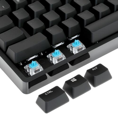 Logitech G Pro использует кабель USB длиной 1.8 м для подключения. Модель не содержит цифрового блока, что делает ее идеальным приобретением для турнирных столов: игре с целью победы не будет ничего мешать. Клавиатура содержит 26 клавиш, на которые можно настроить выполнение сложных заданий: они действенны при нажатии их с клавишами-модификаторами. Особенность устройства в подсветке RGB, которую можно синхронизировать с игровыми профилями, сделав процесс игры более эффектным.