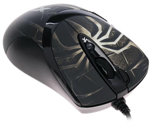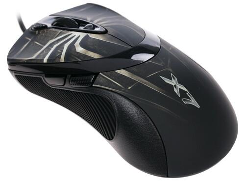 Проводная мышь A4Tech XL-747H – игровой компьютерный манипулятор с изображением на верхней панели паука, который добавляет внешнему облику устройства брутальности. С боков под опорные пальцы имеются рельефные вставки из прорезиненного материала. Поверхность имеет эластичную матовую текстуру, благодаря чему ладонь не липнет и не испытывает дискомфорт.