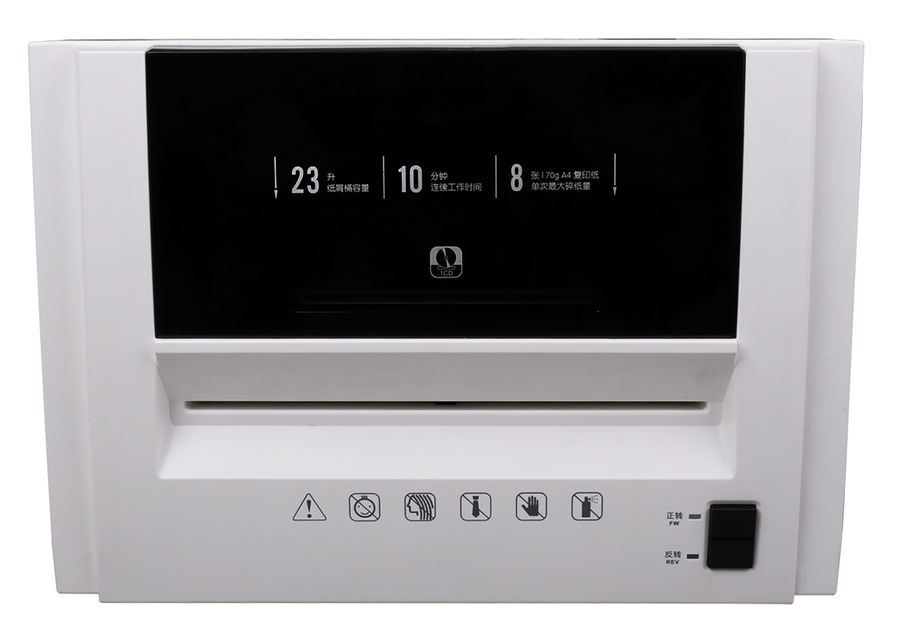 одновременная загрузка, листов 8; резка на фрагменты; объем корзины 23л; класс секретности: уровень 5; Переработка скрепок; Переработка степплерных скоб; Переработка кредитных карт; CD и DVD