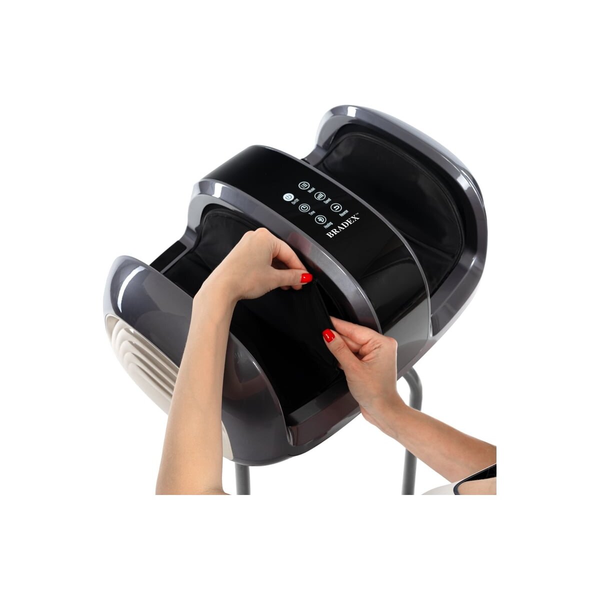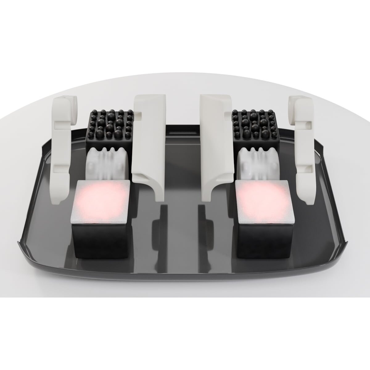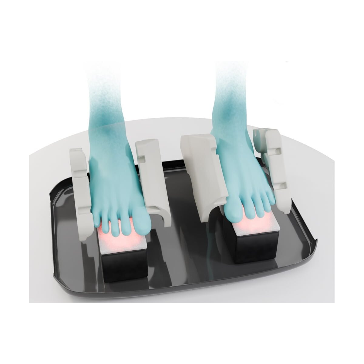 Массажные механизмы устроены таким образом, что при массаже происходит полный охват стопы с 3-х сторон: боковые поверхности, свод стопы, пальцы и подушечки пальцев, а также пятка.