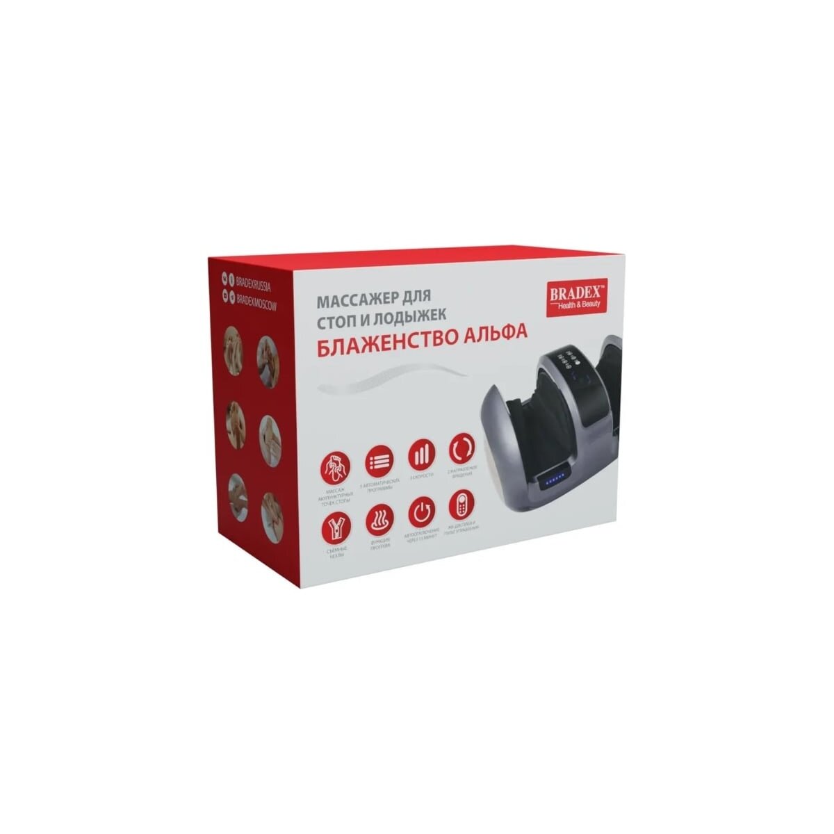 «БЛАЖЕНСТВО АЛЬФА» - стильный современный домашний массажер, сочетающий в себе два типа массажа: традиционный точечный роликовый массаж стоп и интенсивный компрессионный массаж боковых поверхностей стоп валиковым механизмом.