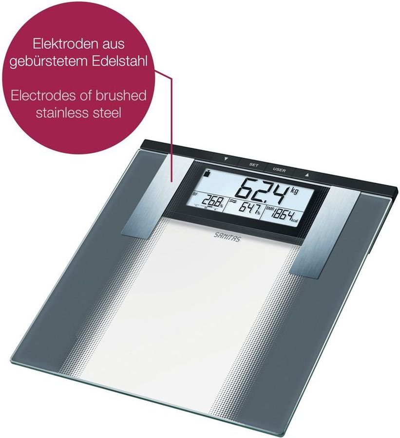 Описание: Помимо измерения массы тела, позволяют оценить содержание в организме воды, жировой, мышечной и костной ткани. Результаты измерений сохраняются в памяти для 10 пользователей. Весы автоматически включаются при касании ногами платформы и автоматически выключаются после схода с нее.