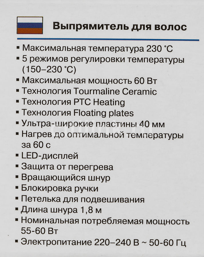 настройка температуры, максимальная температура 230°С время нагрева 60с, дисплей, цвет — черный