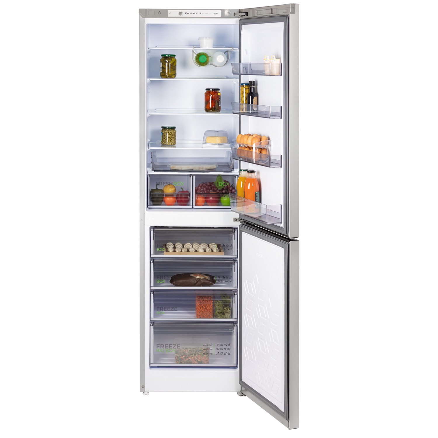 Комплектация Контейнер для 20 яиц, масленка, выдвижной лоток, 2 складные полки, полка для бутылок