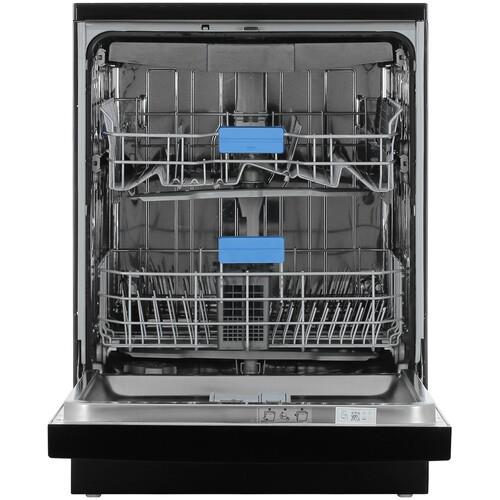 Beko BDFN25521B имеет ширину 60 см. Три корзины позволяют разместить до 15 комплектов посуды за один раз. Верхняя корзина регулируется по высоте. Это удобно для размещения крупногабаритных предметов.