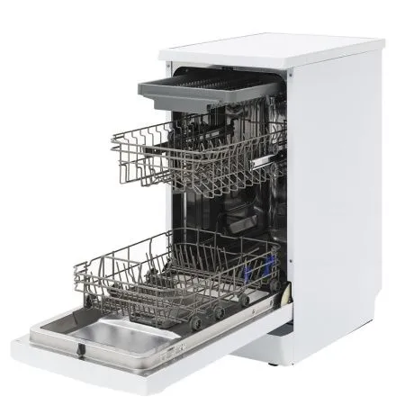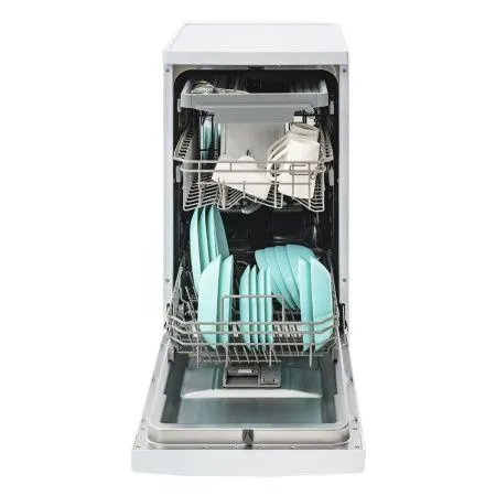 Экономичный расход воды (14 литров за цикл) и высокий класс энергоэффективности A+ делают эксплуатацию выгодной. Система защиты от протечек гарантирует безопасность использования. Несмотря на компактные размеры, машина обеспечивает качественное мытье и сушку посуды, избавляя от необходимости ручной мойки.