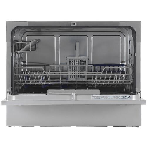Посудомоечная машина MAUNFELD MLP-06DS на 6 комплектов оснащена 1 корзиной для посуды, лотком для столовых приборов и держателями для бокалов. Модель с частичной защитой от протечек обладает 6 уровнями регулировки жесткости и ионообменником для смягчения воды. Функция Stop & Go позволяет одним касанием ставить машину на паузу, после чего так же легко возобновлять работу.