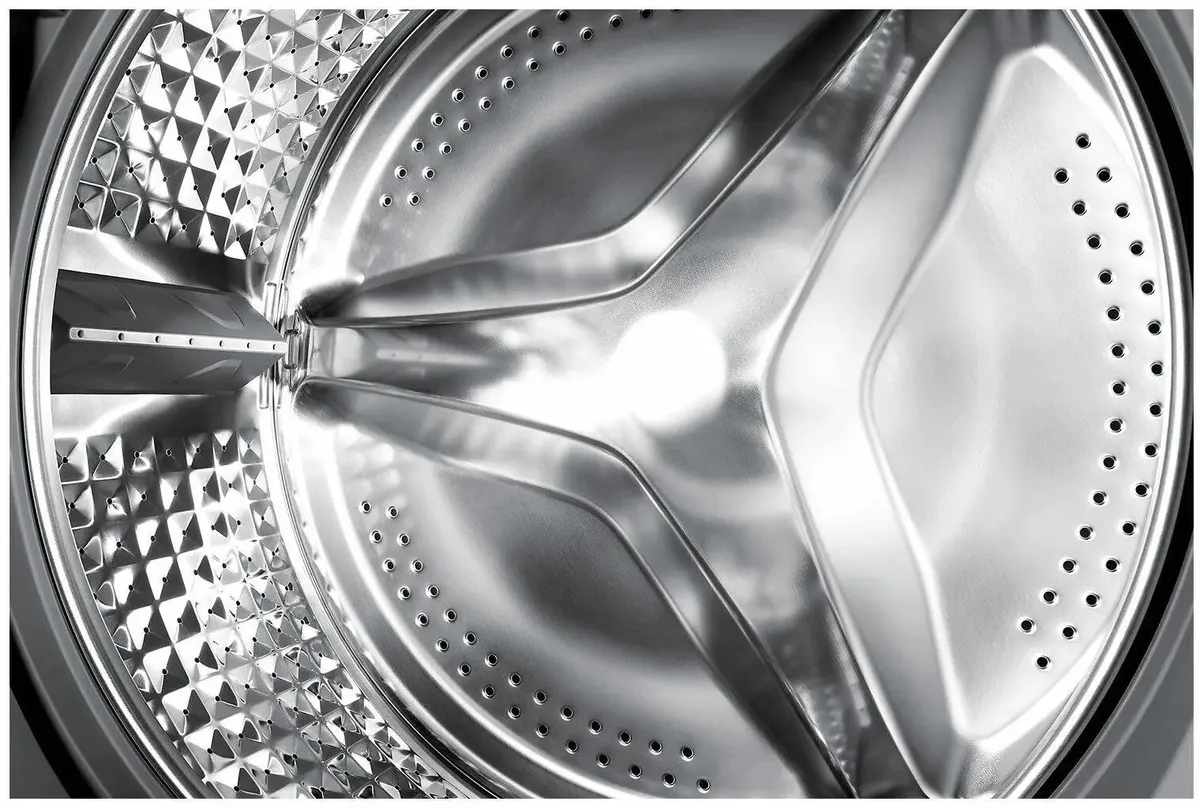 Цифровой инверторный двигатель гарантирует высокую надежность, низкий уровень шума и вибраций, а также длительный срок службы техники. Система контроля вибраций автоматически балансирует барабан во время отжима, минимизируя шум и обеспечивая плавную работу даже на высоких скоростях. Это делает эксплуатацию машины особенно комфортной в любое время суток.