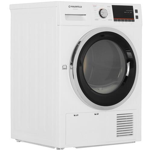 В барабан машины MAUNFELD MFDM168WH можно поместить до 8 кг влажного белья. Благодаря поддержке 16 программ можно выбрать оптимальный режим сушки в зависимости от типа ткани. Управление устройством реализовано через электронную панель с дисплеем и кнопками. Для выбора программы используется поворотное колесо.