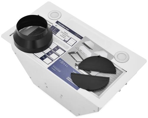 Мощный мотор с лёгкостью очистит воздух в помещении до 32 м². Расположенная под наклоном сенсорная панель управления исключает дискомфорт в использовании и реагирует на нажатия с первого раза. Классический европейский размер позволит встроить прибор в стандартный шкаф шириной 60 см. Таймер позволит отключиться прибору самостоятельно через 15 минут. Две мощные светодиодные лампы по 2 Вт позволят полноценно осветить рабочую поверхность. Переходник в комплекте позволит подключить воздуховод обоих размеров. Прибор может работать в режимах отвода и рециркуляции, благодаря дополнительной установке угольного фильтра ZKF4.