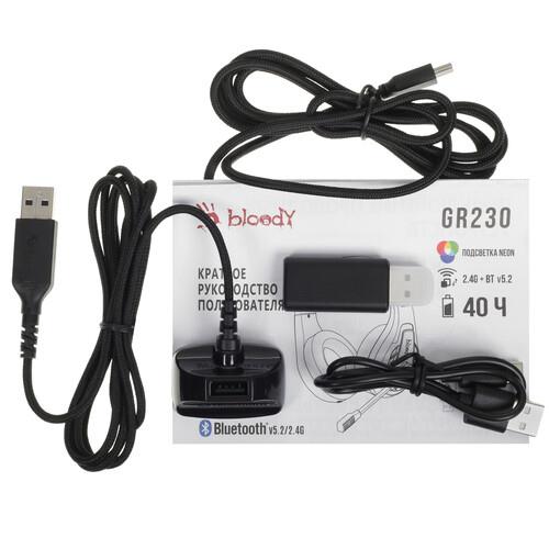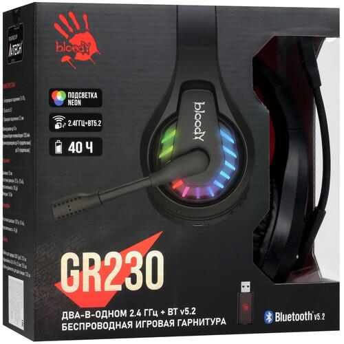 Bluetooth-гарнитура A4Tech Bloody GR230 – модель с поддержкой двух видов беспроводного подключения, благодаря которым ее можно использовать не только со стационарными компьютерами, но и с различными мобильными устройствами. Радиоканал 2.4 ГГц и передовой стандарт Bluetooth 5.2 гарантируют стабильную связь и низкую задержку, что особенно актуально при прохождении игр. Даже если встроенный аккумулятор наушников неожиданно разрядился, классическое проводное подключение при помощи штекера 3.5 mm jack придет на выручку.