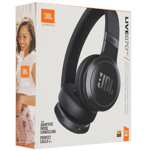 В каждую чашу встроены по 2 микрофона для передачи голоса без искажений во время разговоров. Система активного шумоподавления компенсирует звуки в шумной обстановке. Наушники JBL Live 670NC соединяются с источниками аудио по беспроводному интерфейсу Bluetooth и аудиокабелю с разъемом jack 3.5 мм. Аккумулятор гарантирует до 70 часов автономной работы и поддерживает ускоренную зарядку.