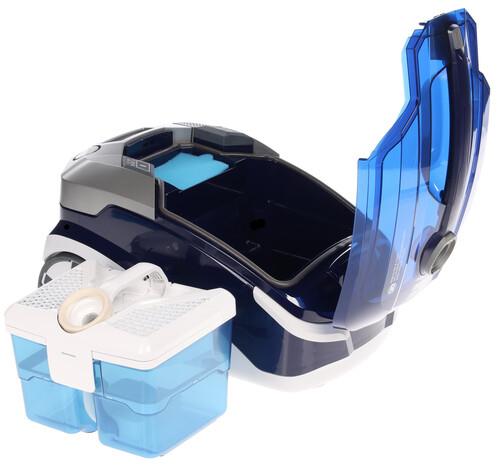 Щетка оснащена дополнительным роликом, который облегчает процесс сбора пыли, а благодаря телескопической конструкции трубы всасывания вы сможете настроить ее длину под себя. Пылесос использует в работе контейнер с аквафильтром и фильтр HEPA. Широкий комплект аксессуаров позволяет подобрать насадку для любой поверхности и повысить эффективность уборки.