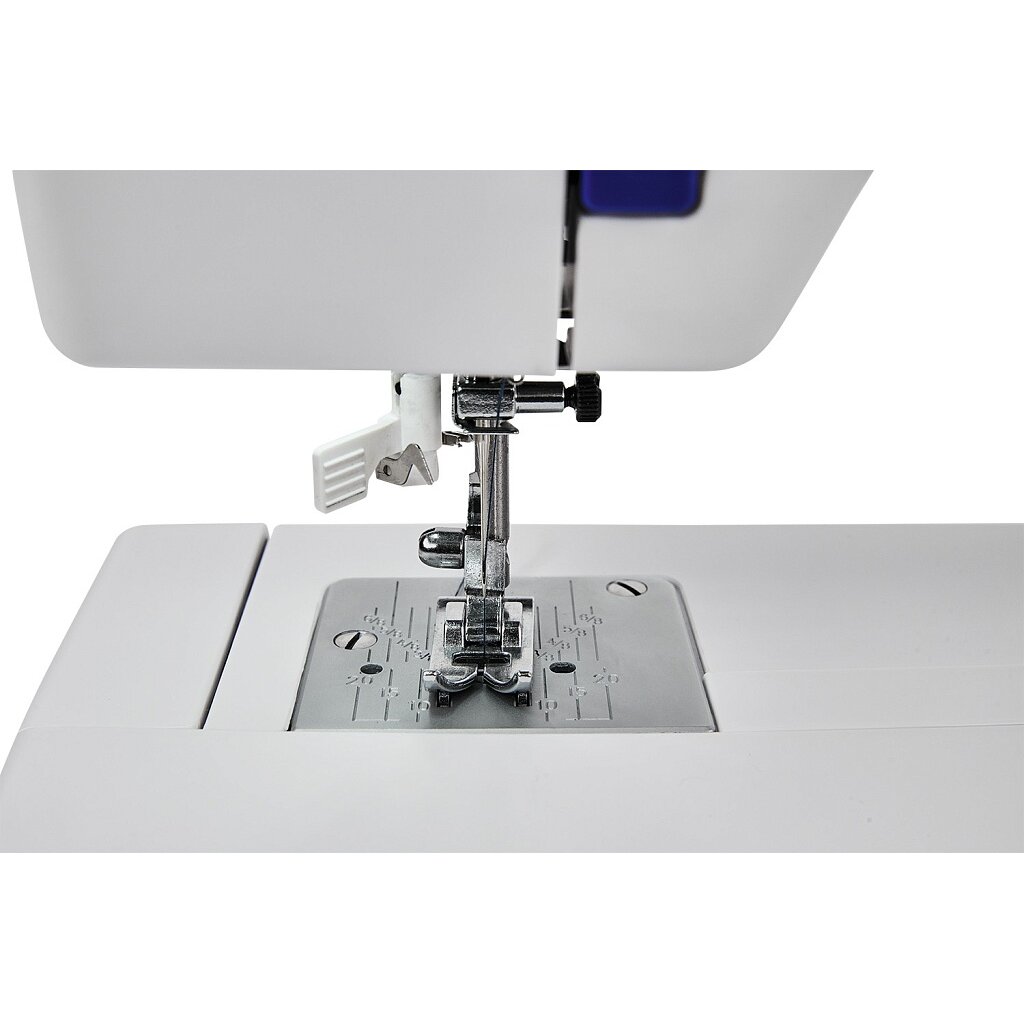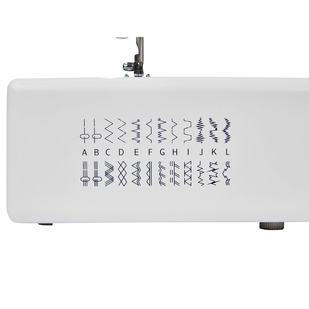 Выполняет необходимые и часто используемые в работе 25 швейных операций: трикотажные, оверлочные, потайные и декоративные строчки, полуавтоматическую петлю для пуговицы.