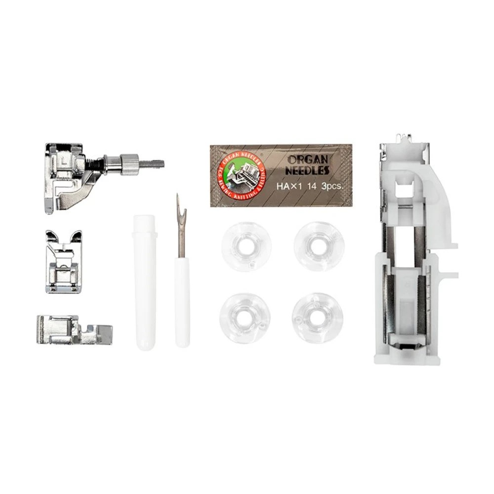 Универсальная лапка Лапка для вшивания молнии односторонняя Лапка для петли-автомат Лапка для потайной строчки Шпульки пластиковые 5 шт. (4 шт. и 1 в машине) Набор игл Organ - 3 шт. Вспарыватель