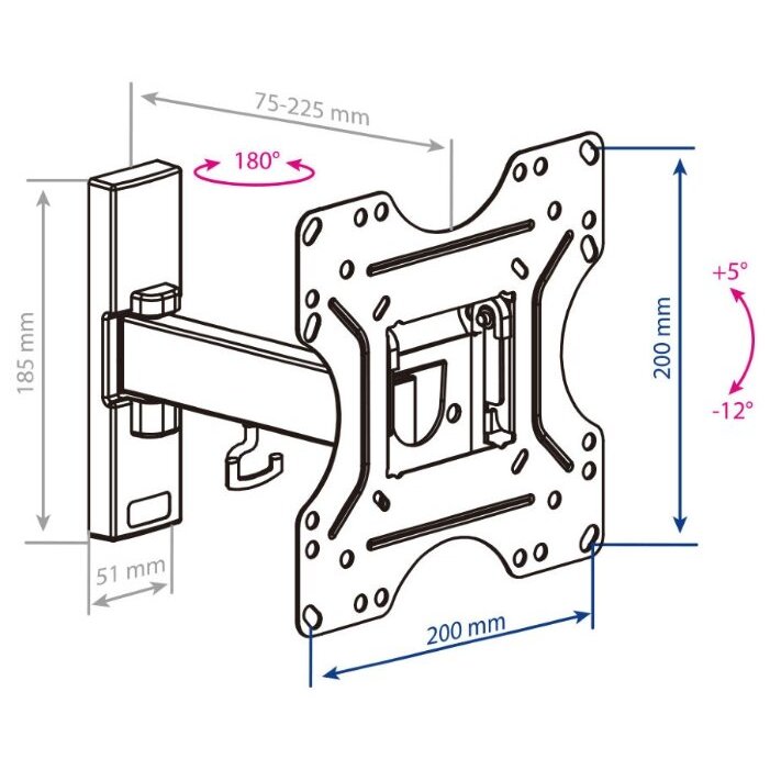 Вылет от стены/потолка: 75-225