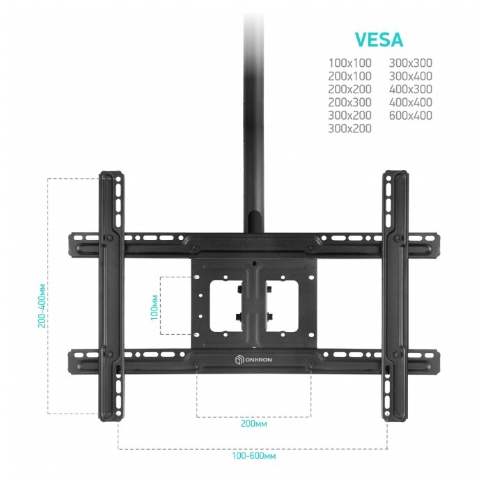Стандарт Vesa: 100x100 мм, 200x100 мм, 200x300 мм, 300x200 мм, 200x200 мм, 300x400 мм, 300x300 мм, 200x400 мм, 400x200 мм, 500x400 мм, 400x300 мм, 400x400 мм, 600x400 мм, 300x100 мм, 600x200 мм, 600x300 мм