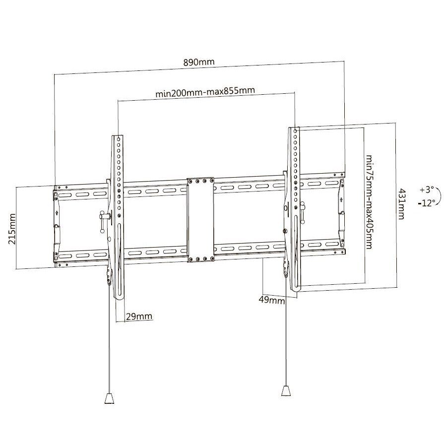VESA: 200x200, 300х200, 300х300, 400x200, 400х300, 400x400, 600x400, 800x400