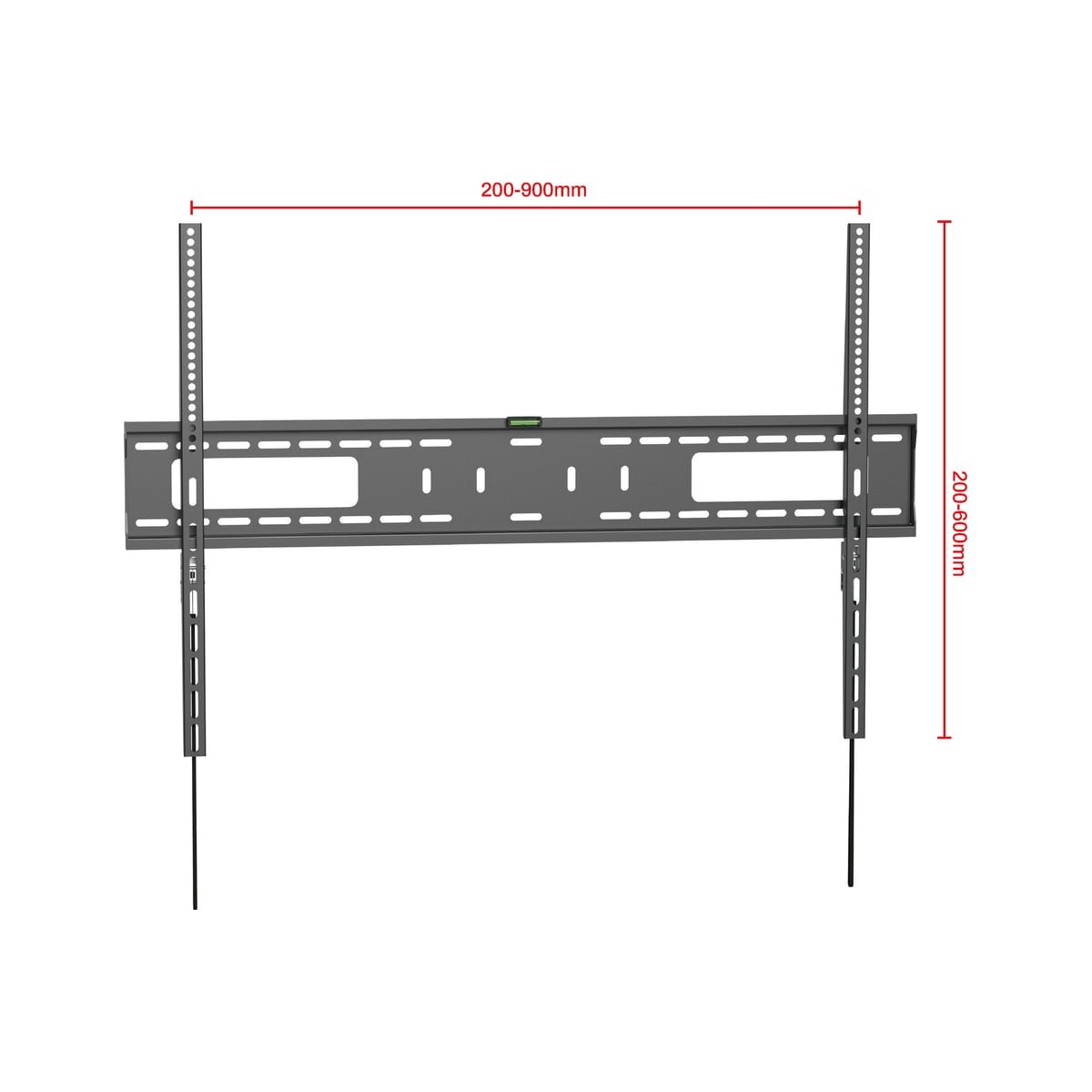 Кронштейн подходит для крепления панелей с множеством вариантов размеров VESA – от самых маленьких (200x200 мм) до самых больших (900x600 мм). В комплектацию кронштейна входит уровень. Он позволяет легко, ровно и быстро закрепить кронштейн на стене. Расстояние от стены составляет 30.5 мм, что придает кронштейну компактный и аккуратный внешний вид, делая его почти незаметным за вашей ТВ-панелью.
