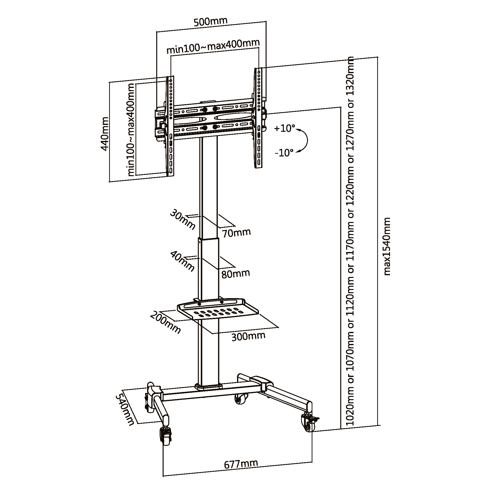 Высота подъема: 1020-1320мм