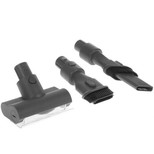 Пылесос Dreame V11 SE располагает внушительным комплектом насадок, при непосредственном участии которых вы беспрепятственно очистите обивку мебели, щели и напольные покрытия. Благодаря бесщеточному мотору значительно понижается уровень производимого шума, а также увеличивается эксплуатационный период устройства.