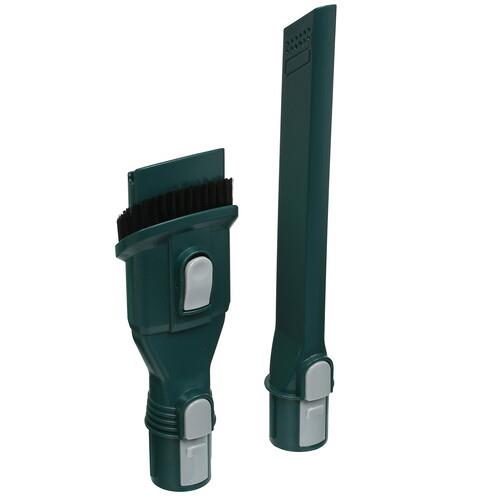 Для тщательной очистки напольных покрытий разработана моторизированная насадка с двумя вращающимися роликами. В комплекте дополнительно предусмотрены комбинированная насадка 2 в 1 для ухода за мебелью и щелевая насадка для уборки мест с затрудненным доступом. Одного заряда аккумулятора емкостью 2200 мА*ч хватает для 32 минут работы пылесоса Haier HVC150SH в автономном режиме.