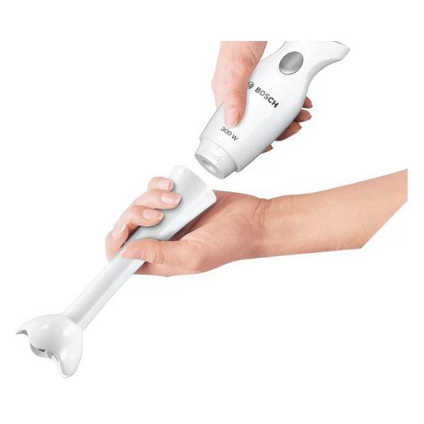 Погружной блендер Bosch MSM6B150 оптимален для приготовления смузи, пюре, измельчения овощей, создания различных эмульсий и соусов. Благодаря специальной конструкции и мерному стакану с высокими бортиками жидкие ингредиенты не разбрызгиваются. Погружная насадка оборудована ножом из нержавеющей стали. Это обеспечивает эффективное измельчение продуктов. Насадка при необходимости с легкостью снимается. Очистить ножи от остатков пищи можно под струей проточной воды или в посудомоечной машине. Мощность блендера составляет 300 Вт. Объем мерного стакана равен 700 мл. Устройство имеет одну скорость, поддерживает «Турбо» и импульсный режимы работы. Корпус погружного блендера изготовлен из пластика.