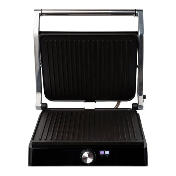 В одностороннем режиме крышка гриля откидывается на 180°, благодаря чему гриль превращается в большую жаровню, а продукты можно выложить сразу на две панели.