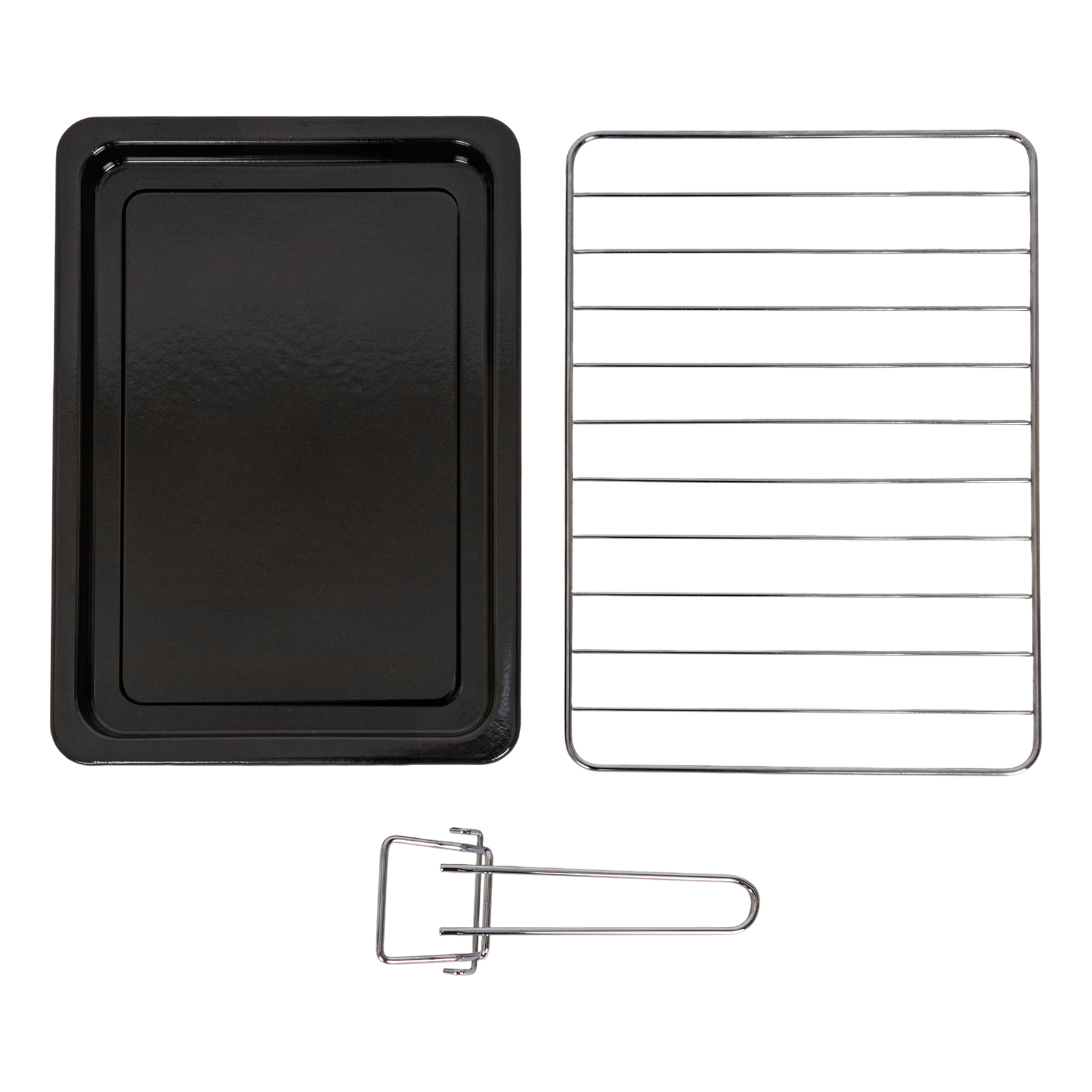 электропечь, металлическая решетка, плоский противень, круглая форма для пиццы, ухват для противня, инструкция на русском языке