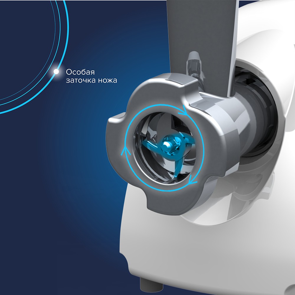 Устойчивые нескользящие ножки из эластомера для фиксации мясорубки на поверхности стола.