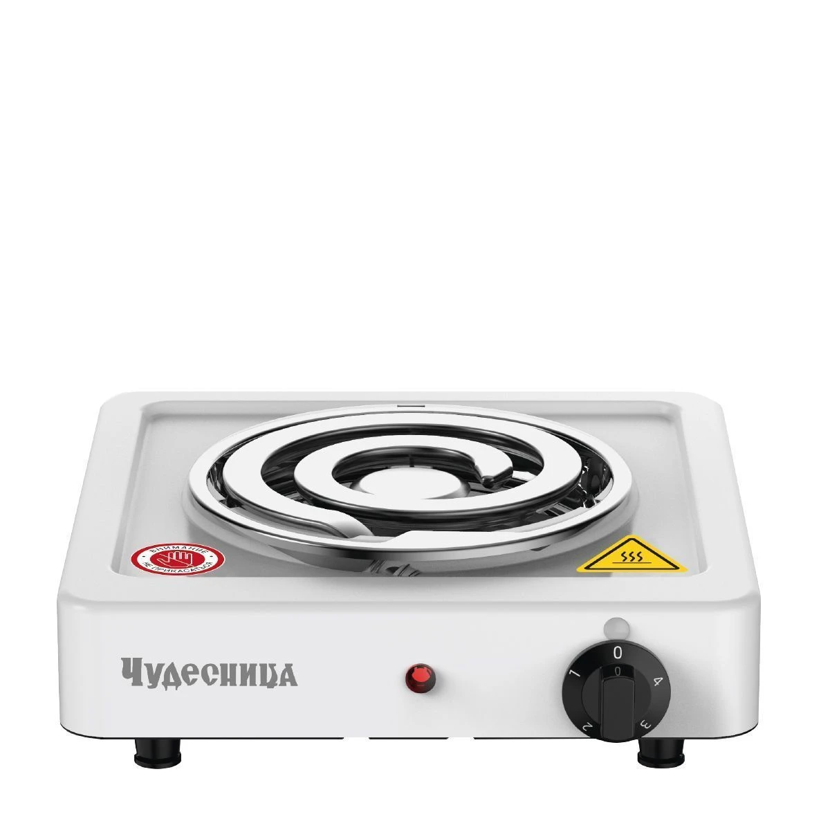 Плитка электрическая Чудесница ЭЛП-812 с 1-й конфоркой, цвет белый, мощность 1000 Вт, толстый спиральный нагревательный элемент из высококачественной стали, регулировка температуры, прочное легкоочищаемое термостойкое эмалевое покрытие, защита от перегрева, световой индикатор работы