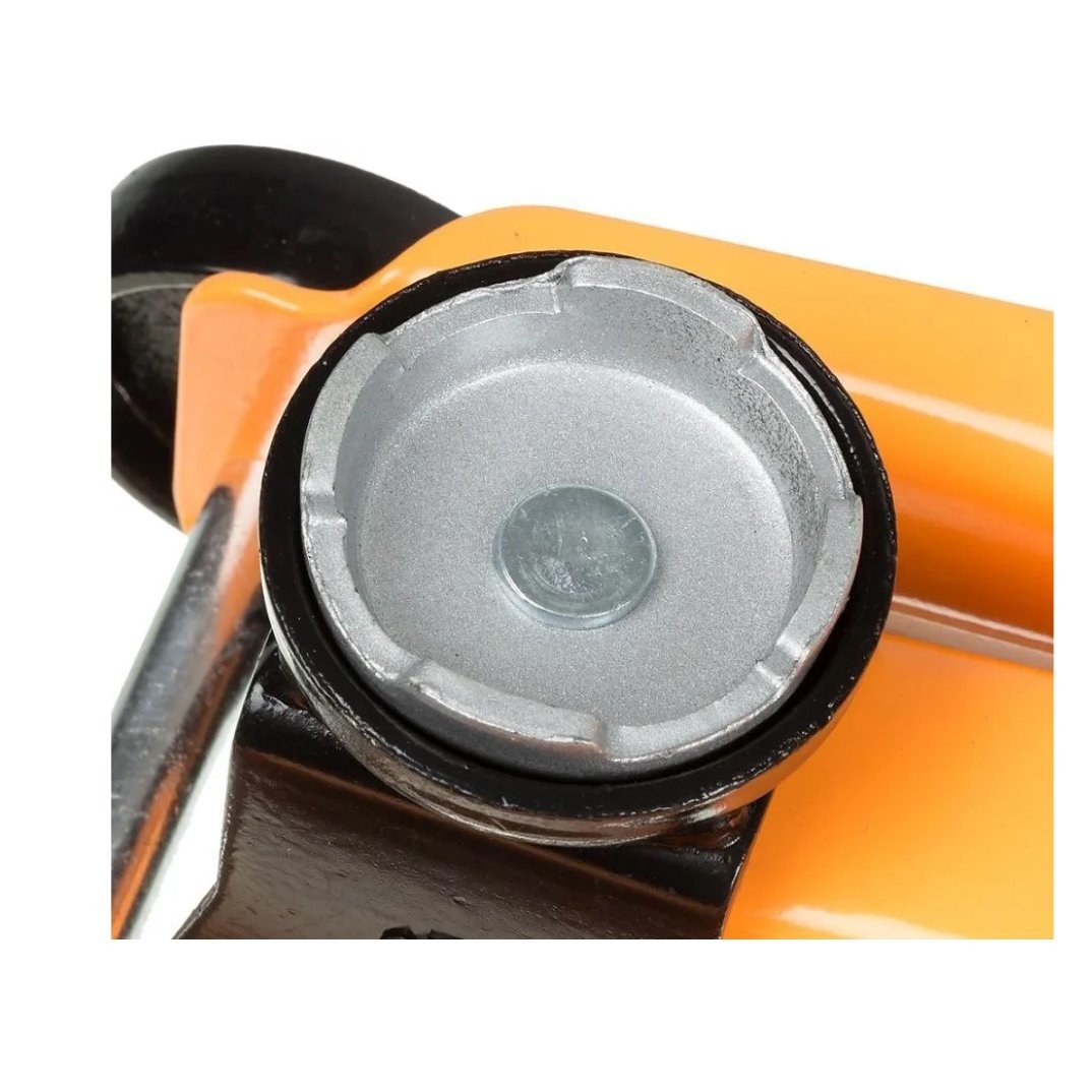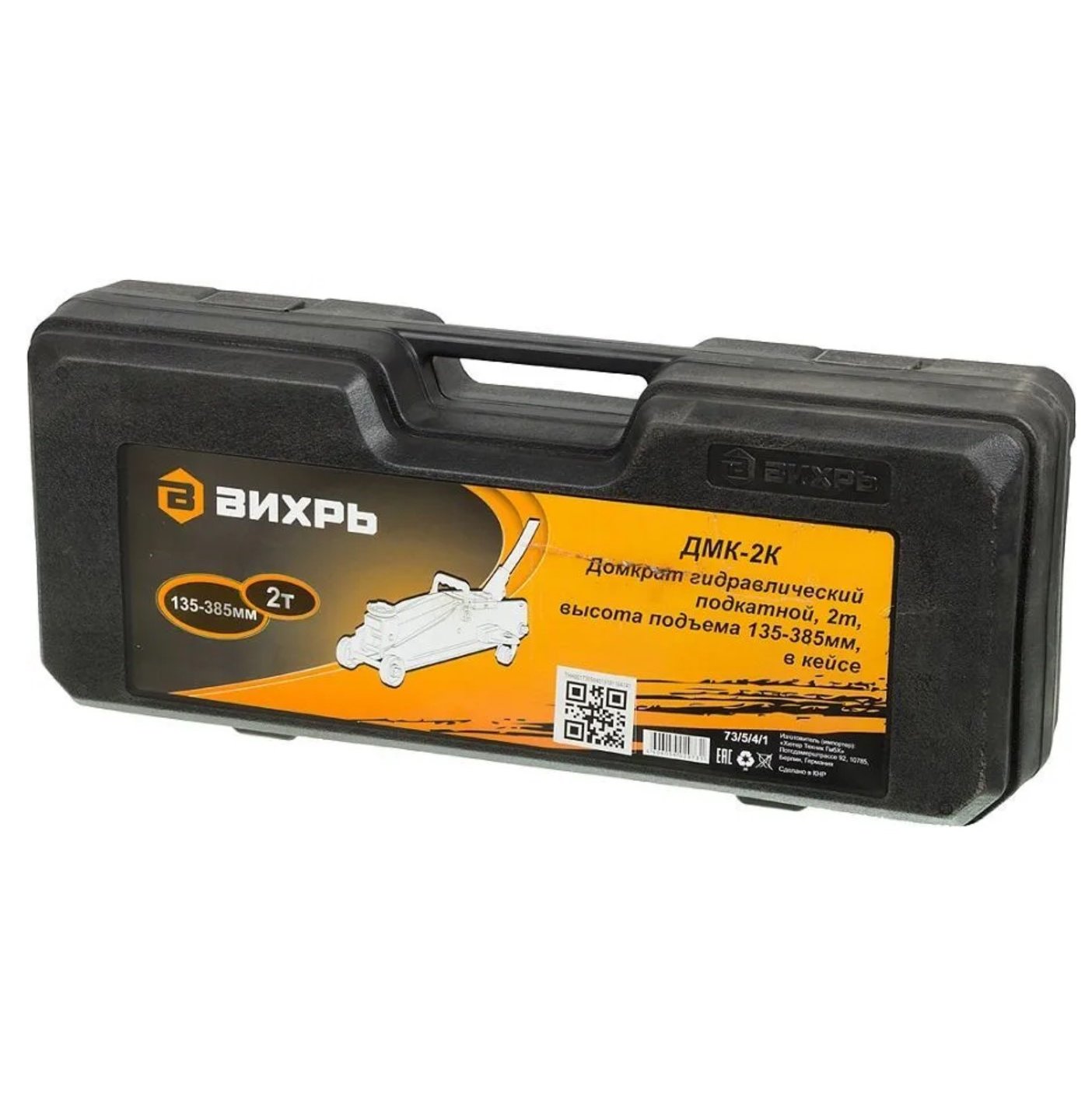 Максимально допустимая масса 2 тонны, высота подхвата 135 мм, высота подъёма 385 мм. Поставляется в кейсе.