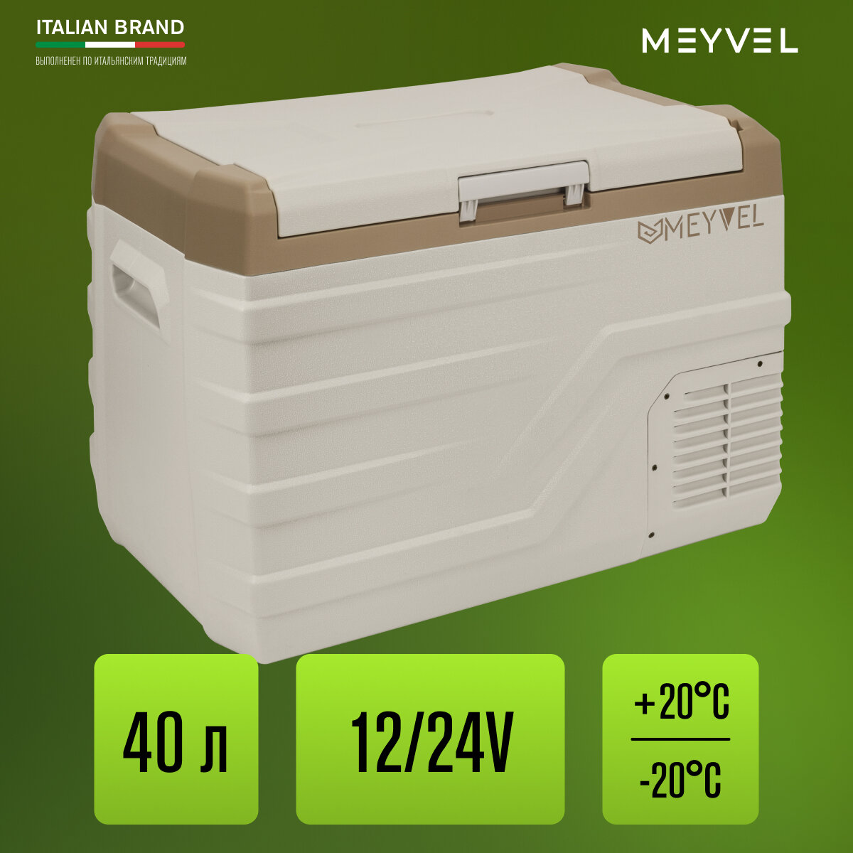 Новая модель переносного автомобильного холодильника от итальянского бренда Meyvel идеально подойдет для хранения или перевозки продуктов и напитков. AF-F40 можно использовать в грузовом и легковом транспорте, автодомах, на яхтах и катерах. А вместительное внутреннее пространство предоставит возможность поместить в автохолодильник большой запас продуктов.