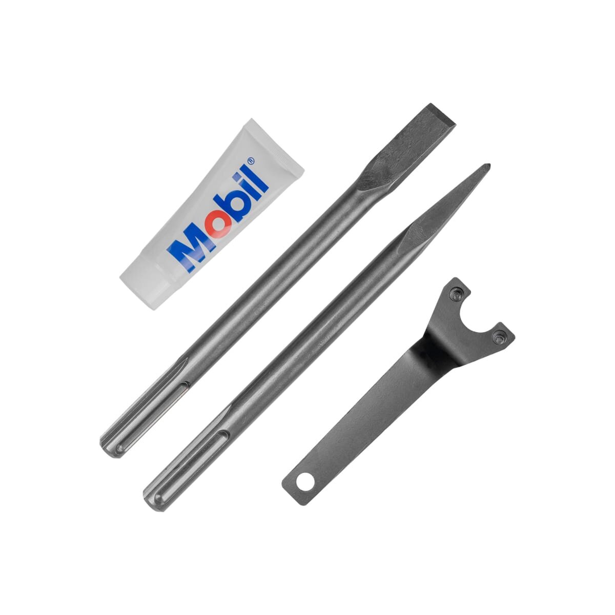Расширенная комплектация: Дополнительная рукоятка, долото, пика, емкость для масла, ключ, пластиковый кейс.