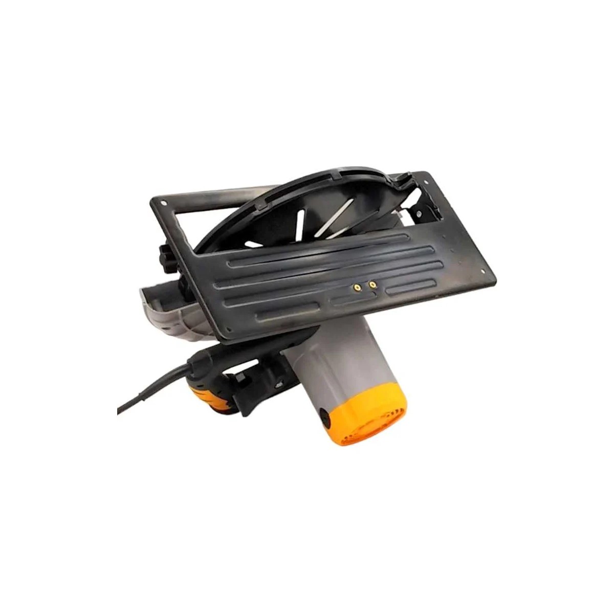 Подошва пилы имеет размер 199х445 мм. В подошве предусмотрены 4 отверстия для крепления пилы к столешнице. В комплект входят 4 самореза для такого крепления. В этом положении пила превращается в настольную циркулярку, также не имеющую аналогов по глубине распила среди переносных инструментов.