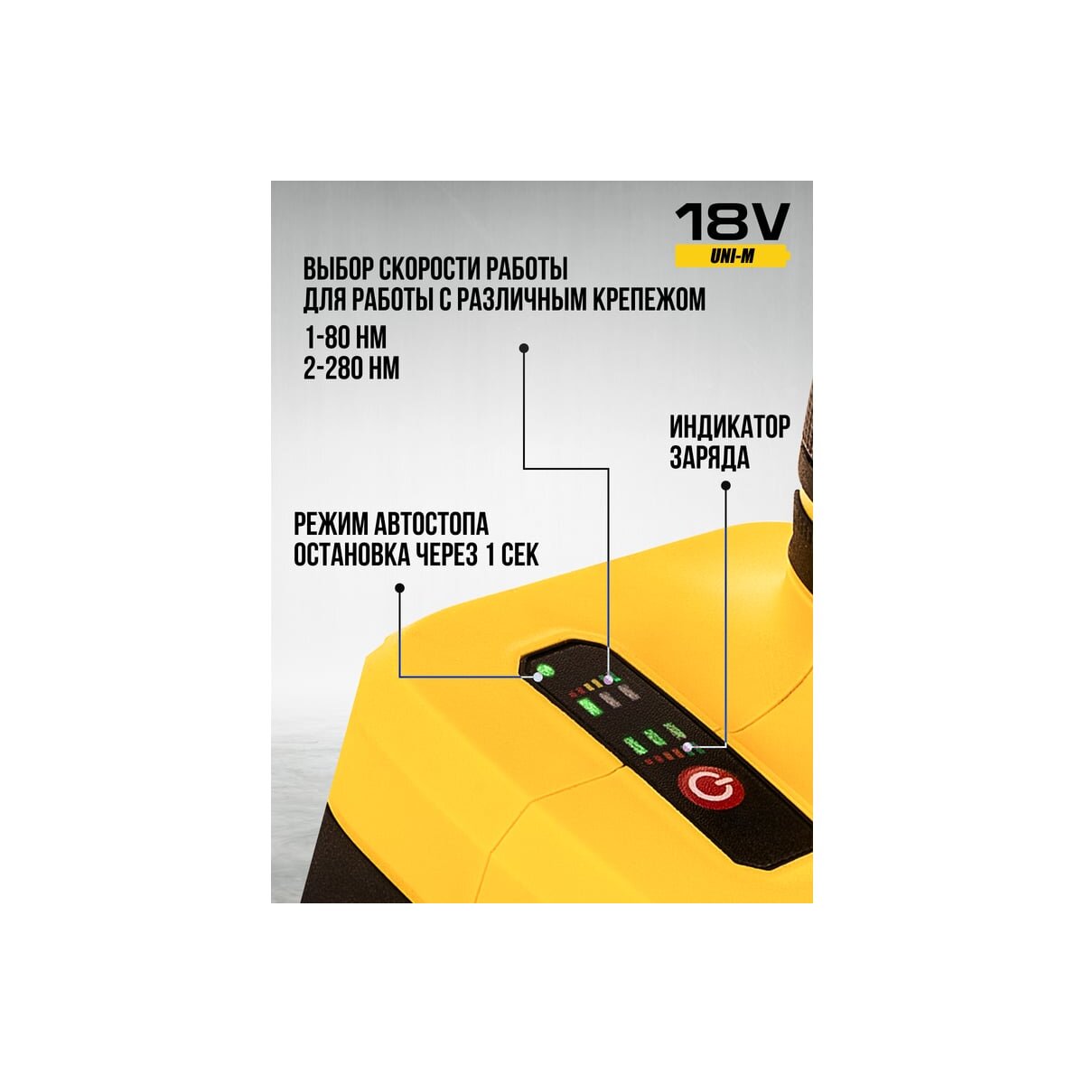 -Три режима работы Крутящий момент на заворот 80/175/280 Нм позволяет выбрать оптимальный режим для различных задач