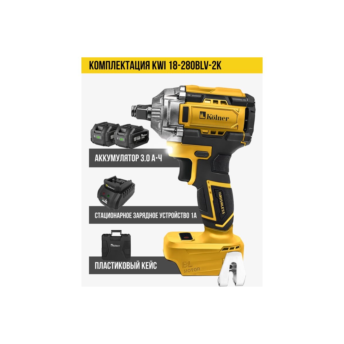 Аккумуляторный ударный гайковерт Kolner KWI 18-280BLV-2K — это надежный и мощный инструмент для работы с крепежом, который идеально подходит как для профессионалов, так и для домашних мастеров.