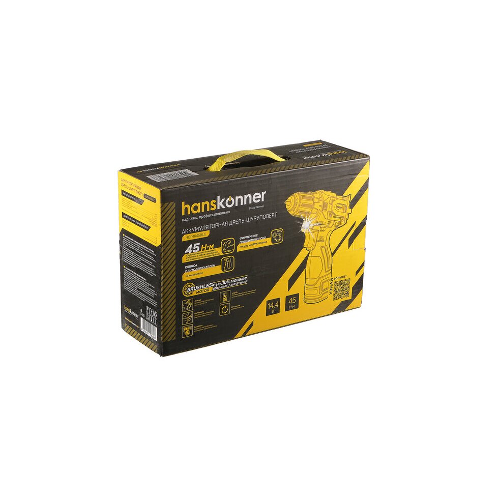 Аккумуляторная дрель-шуруповерт Hanskonner HCD1645BLC с бесщеточным двигателем — одна из самых мощных и компактных в своем классе.